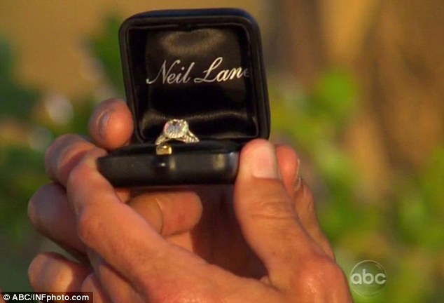 And each series, jewelry designer Neil Lane makes an appearance, brandishing engagement rings priced well into the six-figure range. Lane has been a staple of the ABC show for many years, and appears to help each bachelor pick out just the right engagement ring. The lucky contestant then presents the ring, each time with just the right camera shot to display that NEIL LANE stylized logo (Reg. No. 4,007,677):